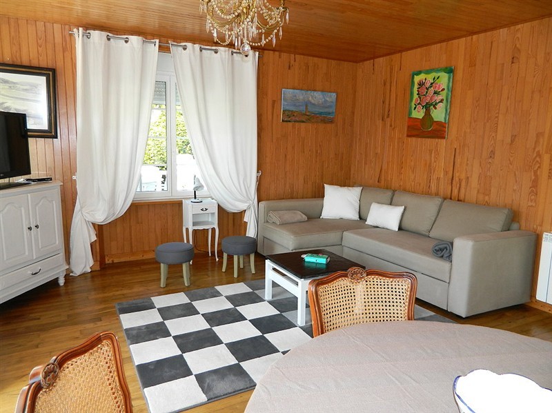 Holiday home with unique panoramic view directly on the Guerledan lake. Sat. TV, Internet.